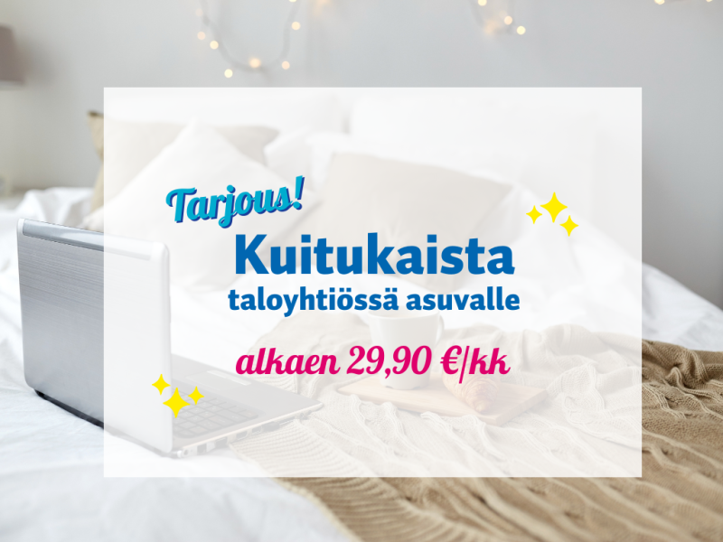 Tarjous koskee kuituliittymällä varustettujen asuntoyhtiöiden asukkaita ja on voimassa 30.4.2026 saakka. Tarjous edellyttää 24 kk:n sopimusta. Määräajan jälkeen sopimus jatkuu toistaiseksi voimassa olevana listahinnalla.
