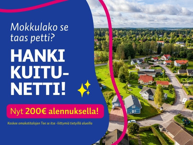 Nyt saat 200€ alennusta kun tilaat uuden tee se itse -kuituliittymän omakotitaloosi!