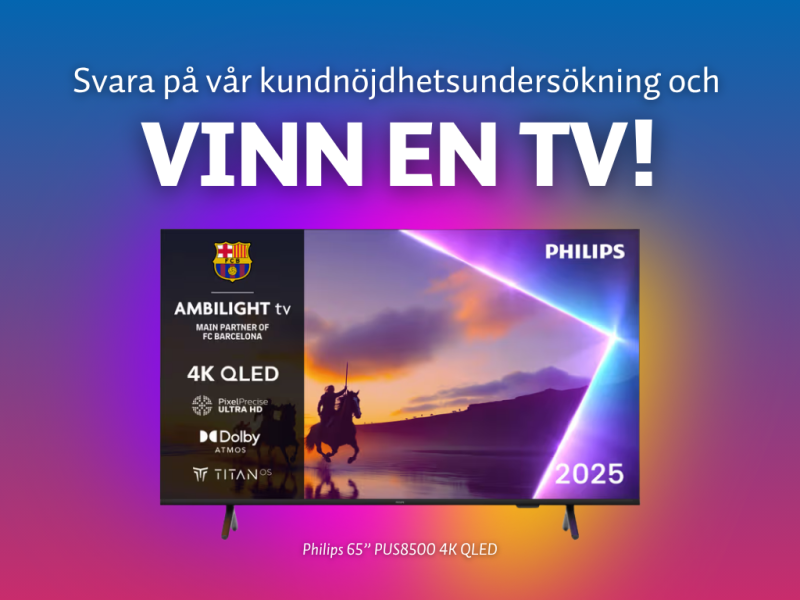 Bland alla kunder som lämnat sina kontaktuppgifter i samband med svaret lottar vi ut en Philips 65” PUS8500 4K QLED (2025) smart-TV.